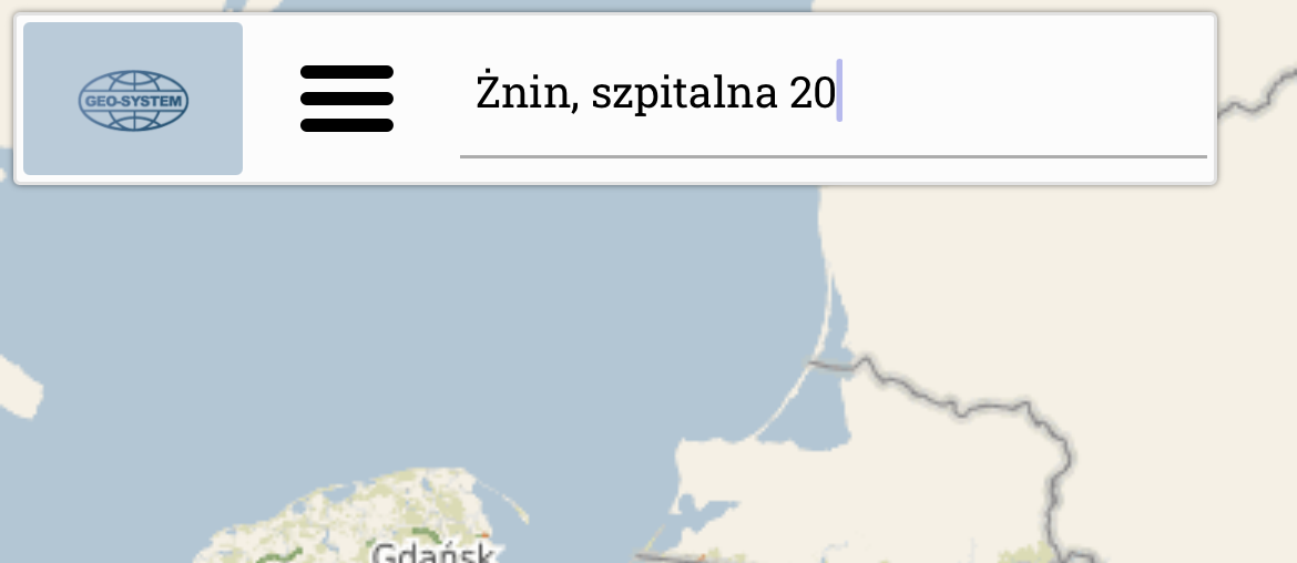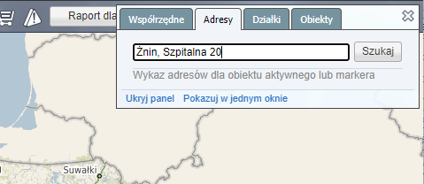 Wpisz adres, np. Żnin, Szpitalna 20 i wciśnij Enter.